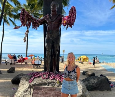 Minha jornada também me levou ao Havai, onde manifestei um dos meus maiores sonhos. Lá, encontrei uma conexão profunda com a natureza, o oceano, a energia ancestral e comigo mesma, que resultou na criação da minha empresa ALOHA Desenvolvimento Humano, um reflexo do meu caminho de autoconhecimento e manifestação. O nome "ALOHA" vai além de uma saudação — ele representa um estilo de vida com consciência, leveza e bem-estar, em sintonia com a natureza e a sua verdadeira autenticidade.
